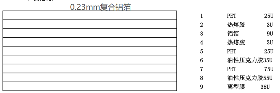 由上圖可以可以看出T0.23mm復合鋁箔有9層結構,使用中將離型膜分離扔掉,余下的就全部貼到FFC排線上去。那么復合鋁箔各部分的功能呢?